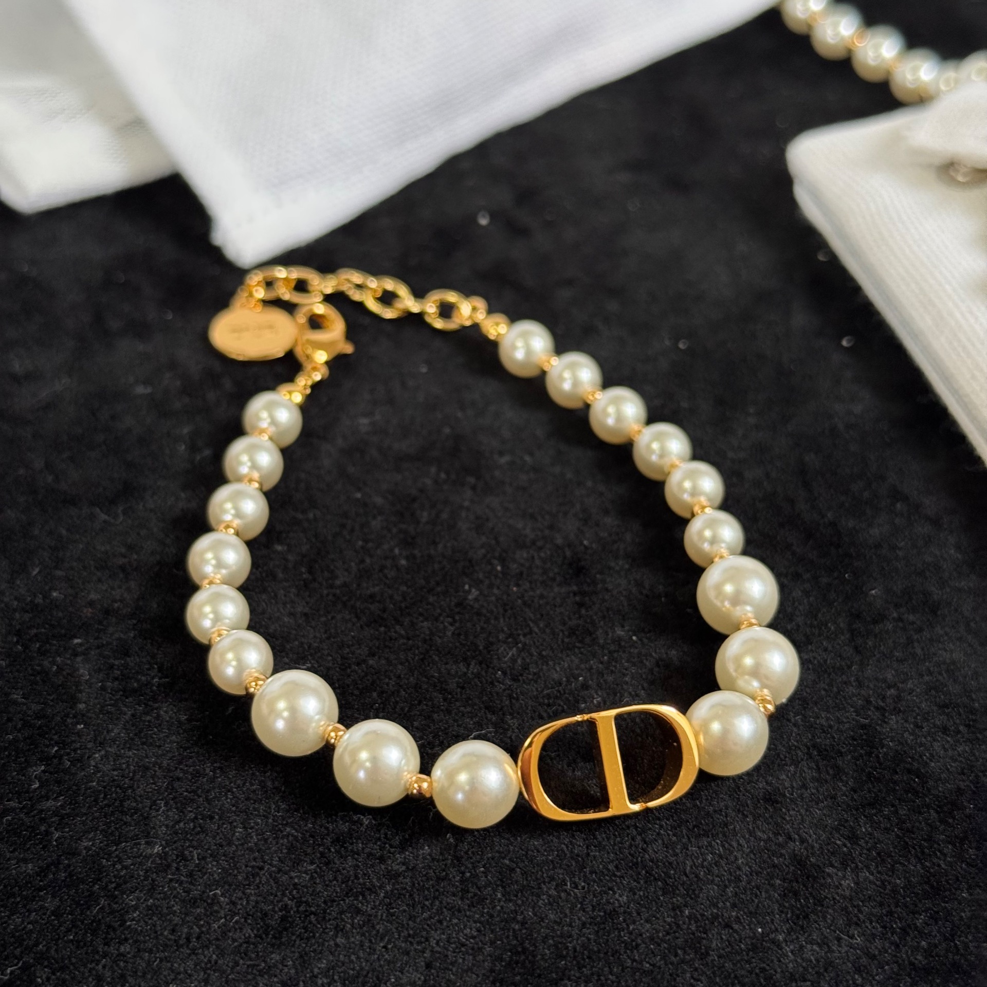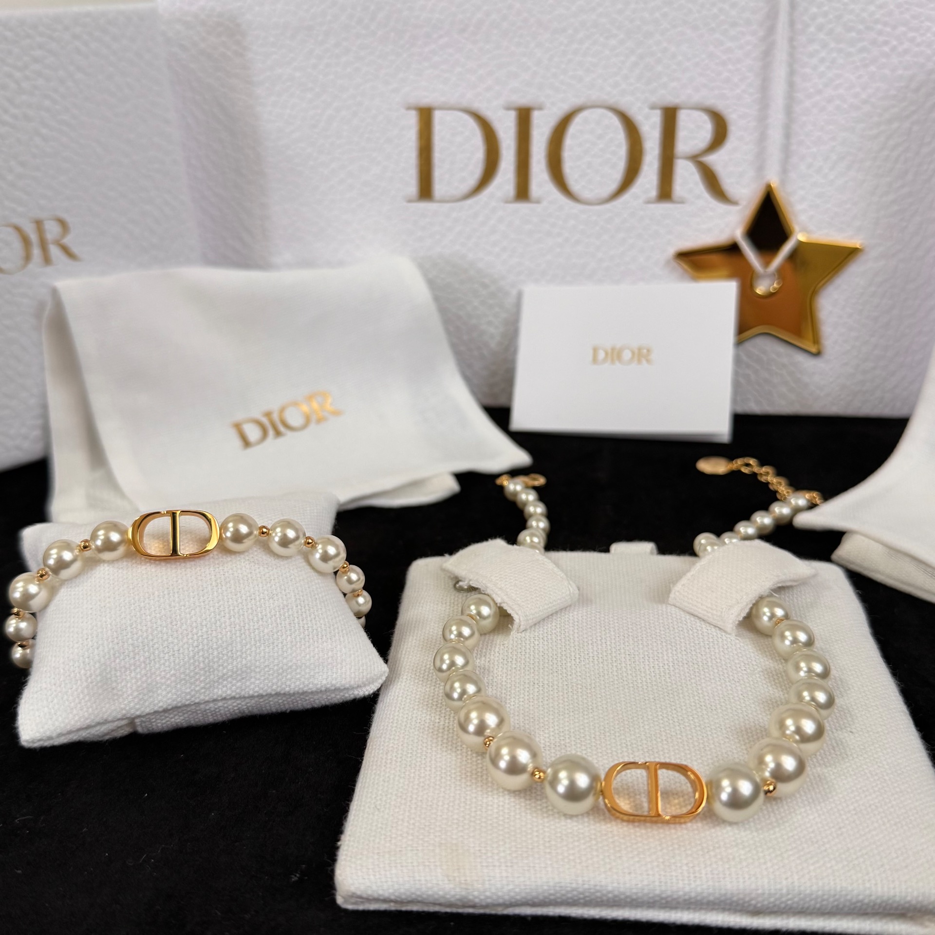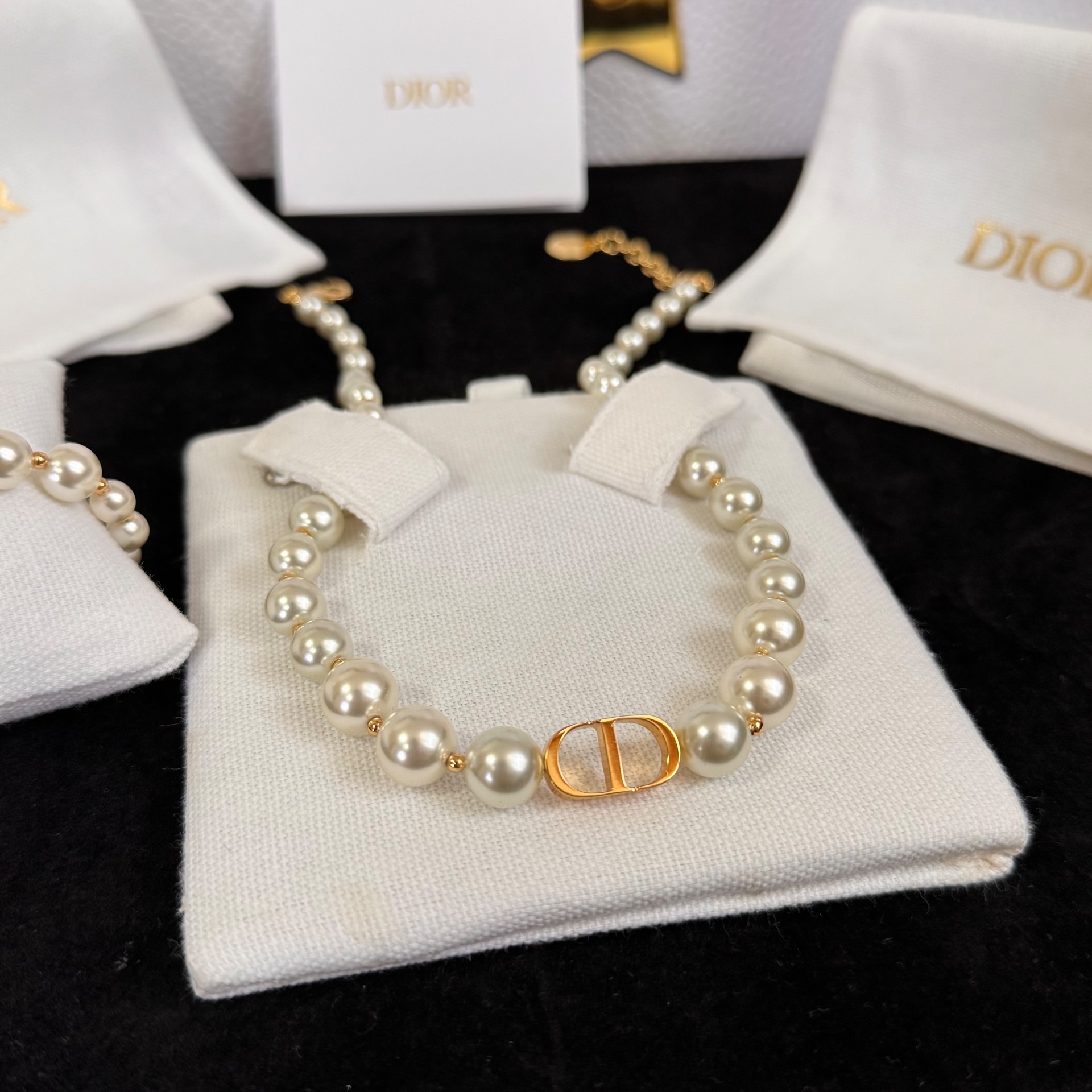 Krátký perlový náhrdelník + náramek s ikonickým logem CD.