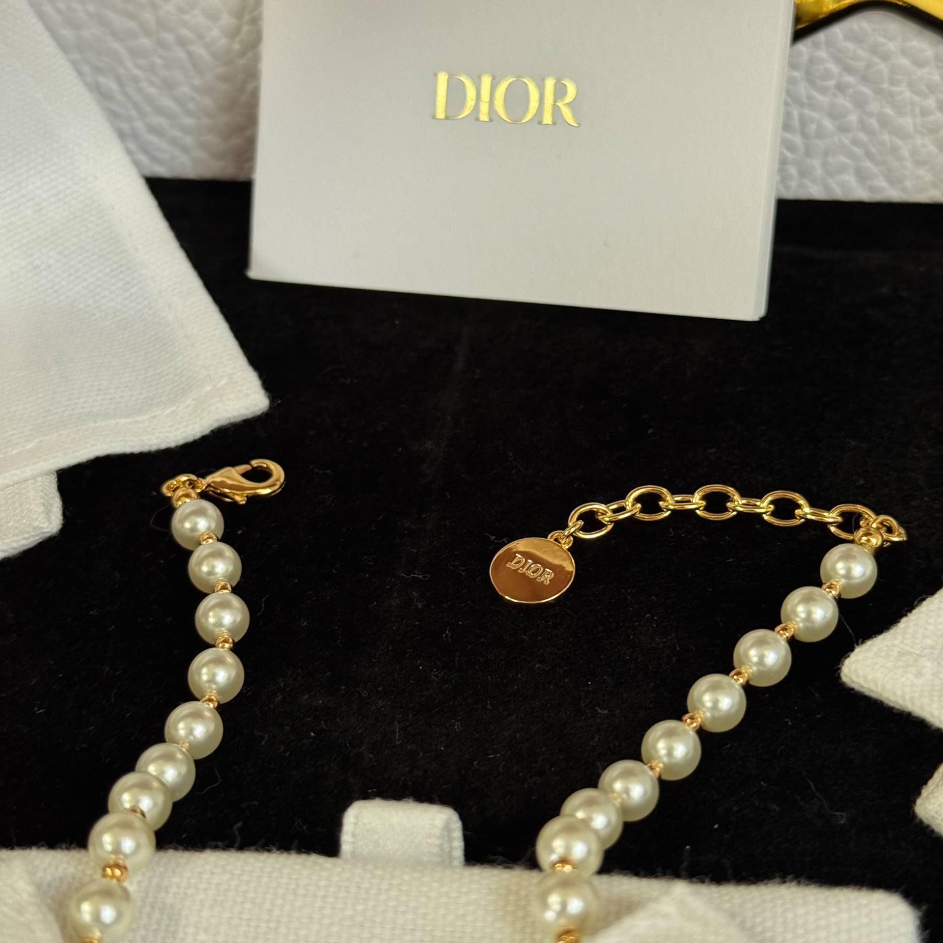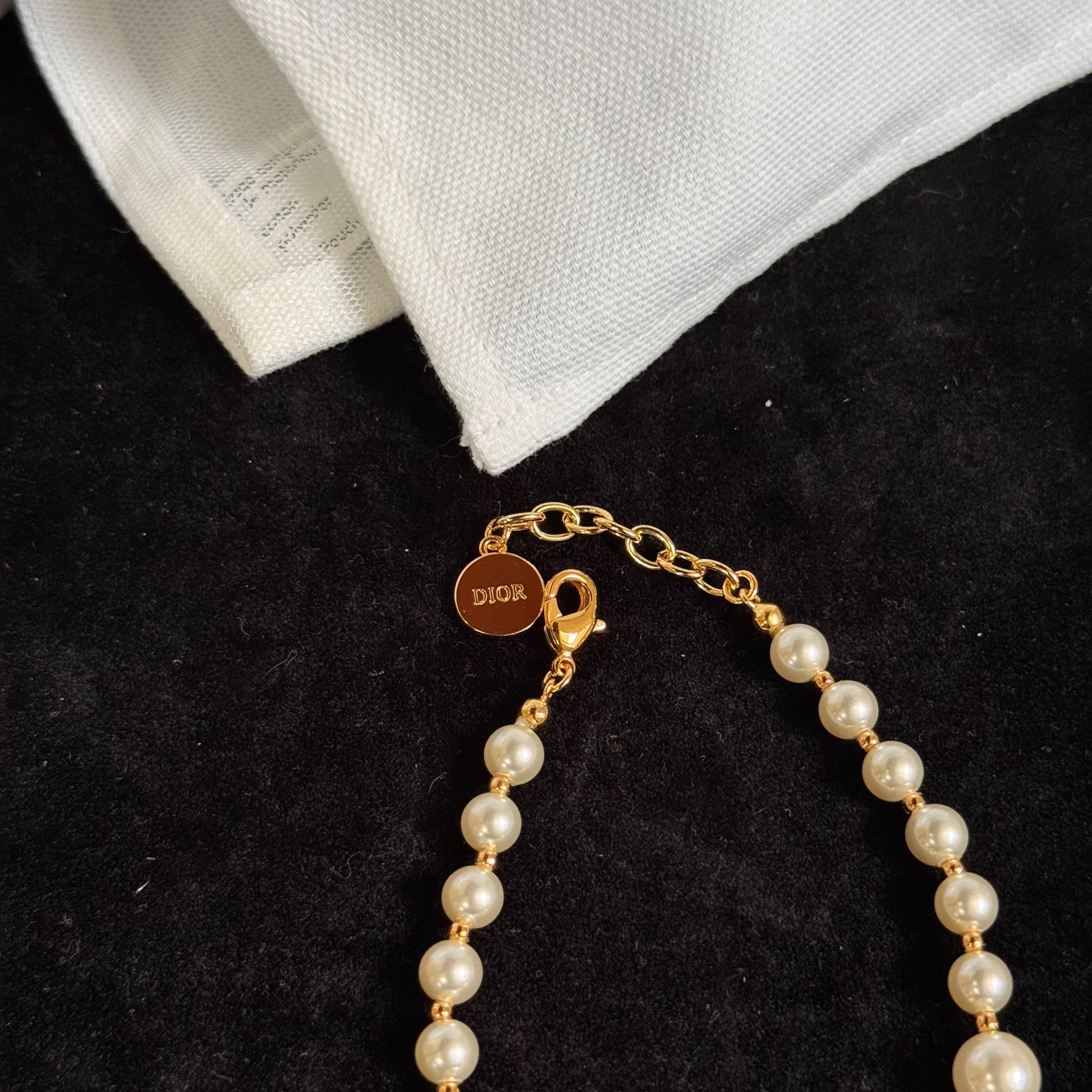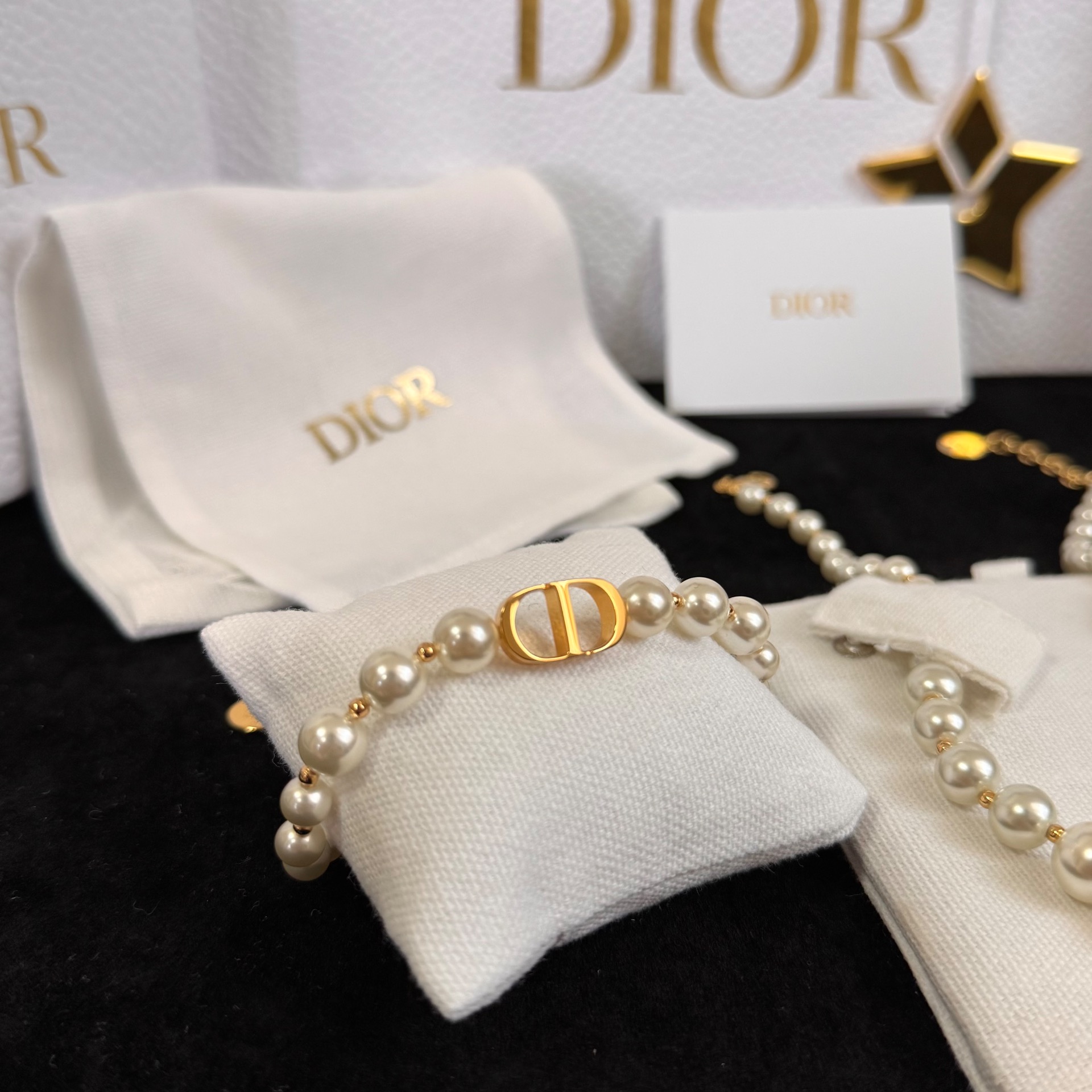 Krátký perlový náhrdelník + náramek s ikonickým logem CD.