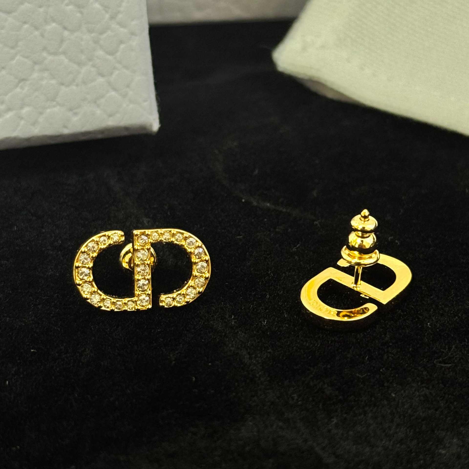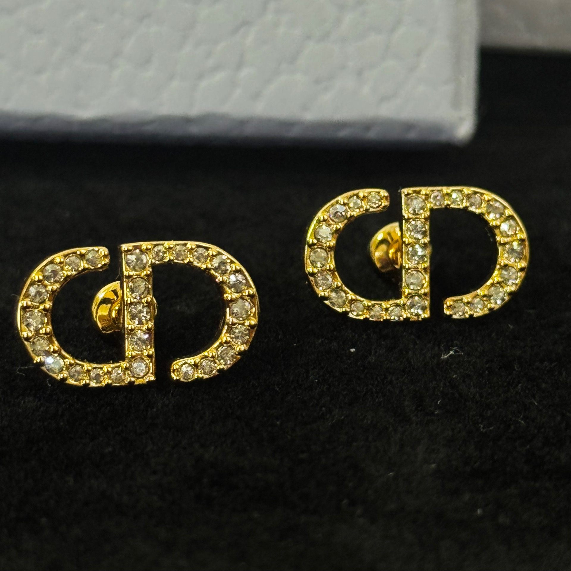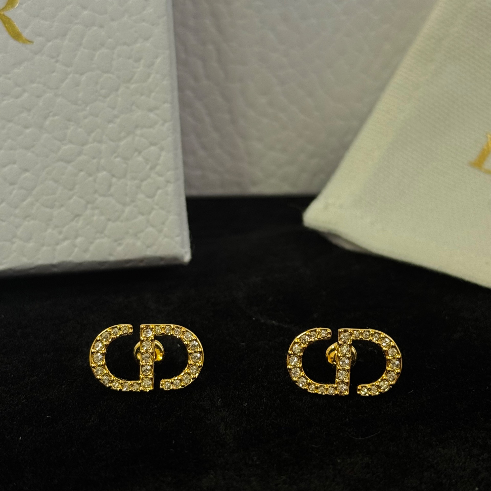 Elegant and timeless studs with gold finish and sparkling crystals.